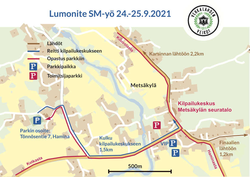 - Kilpailukeskus on Metsäkylä seuratalo, Osoite: Metsäkyläntie 393, Hamina